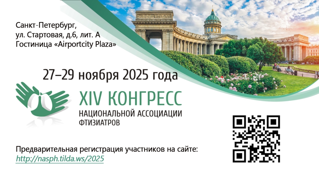 Приглашаем Вас принять участие в 14-м ежегодном Конгрессе «Национальной Ассоциации Фтизиатров», который пройдет 27-29 ноября 2025 года в Санкт-Петербурге